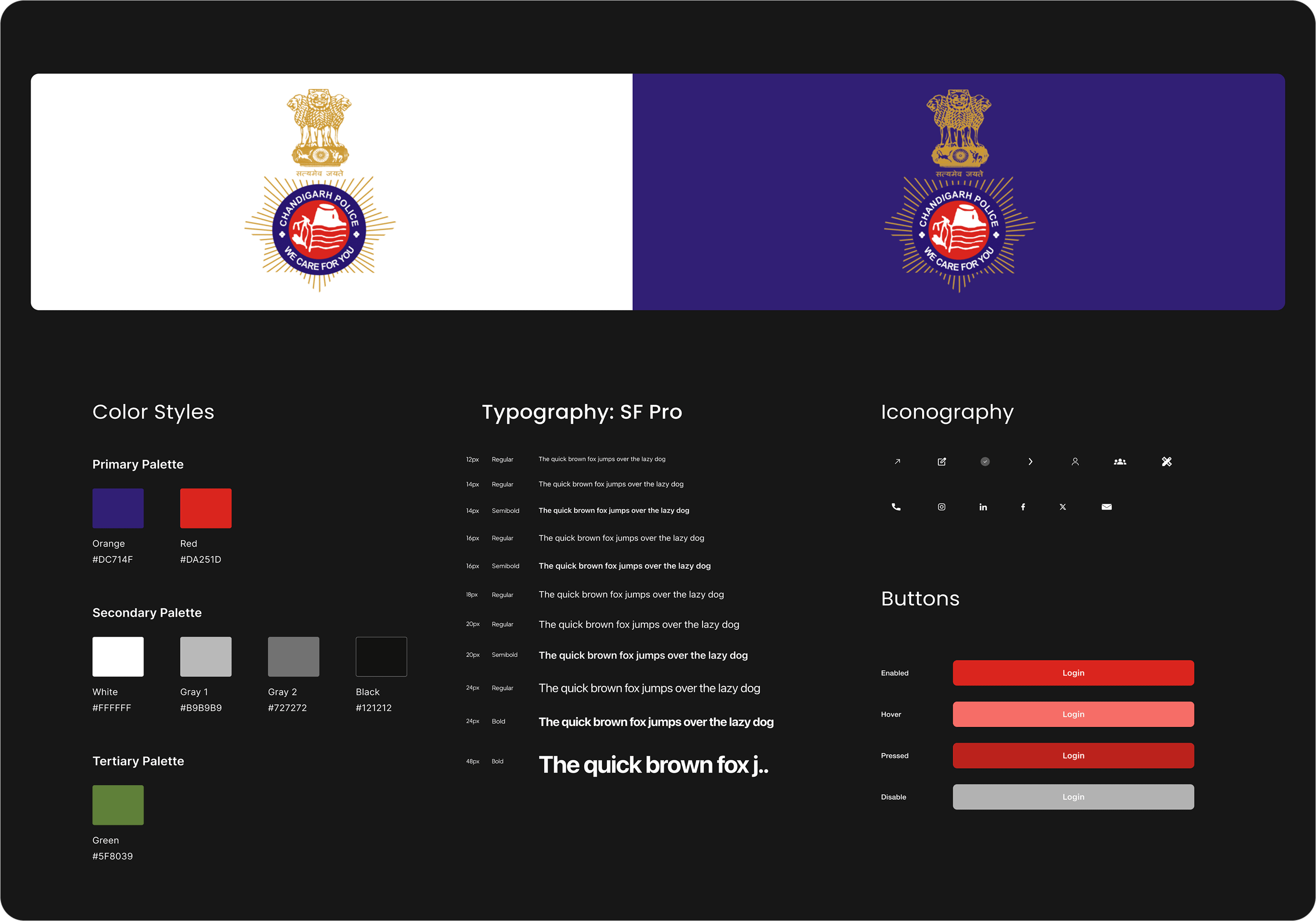 The design was centered on clarity and usability. Clean layouts, simple navigation, and bold typography ensured officers could access information quickly—even under pressure. Colors and icons were chosen for immediate recognition of incident statuses, ensuring no task went unnoticed.