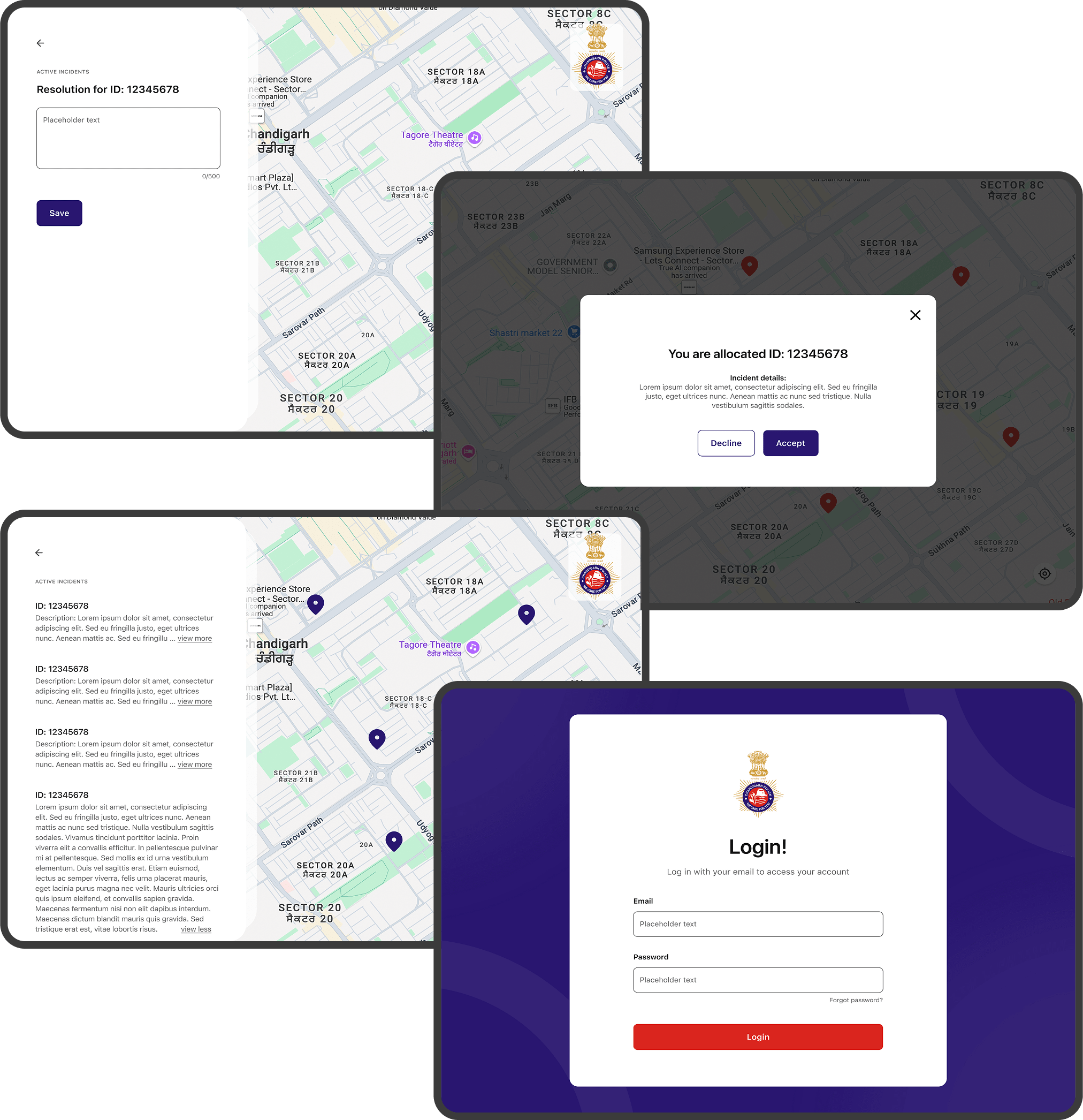 We studied existing workflows within the Chandigarh Police and identified bottlenecks in incident handling. Officers often relied on manual reporting, which created delays and inconsistencies. Through this research, we designed a digital solution that mirrors their existing workflows while eliminating inefficiencies.