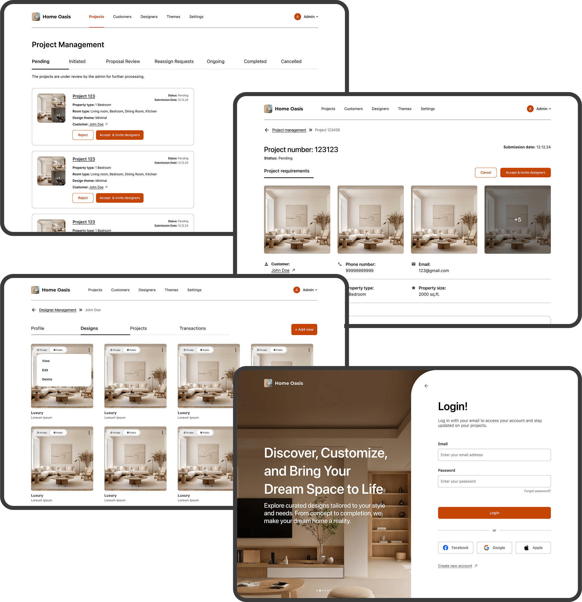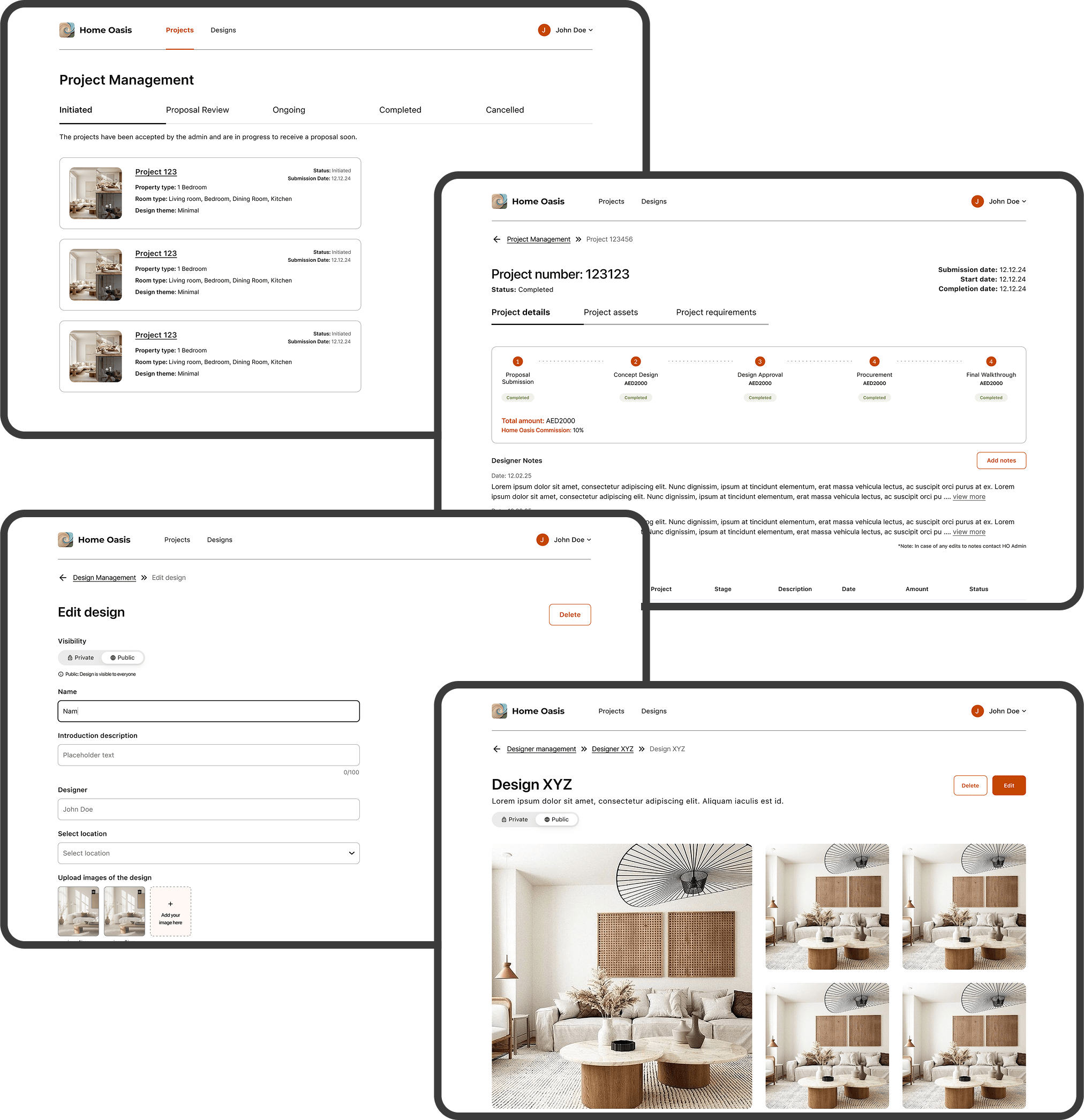 Home Oasis is a revolutionary design-tech platform that transforms the UAE's interior design and architecture landscape by creating seamless connections between discerning homeowners and elite creative professionals. Through our sophisticated digital ecosystem, the platform eliminates traditional project management complexities by integrating designer discovery, project visualization, milestone tracking, and secure payment processing into one unified experience. Utilizing advanced matching algorithms and comprehensive portfolio analytics, Home Oasis ensures perfect synergy between client aesthetic preferences, budget parameters, and designer expertise across Dubai, Abu Dhabi, and the broader UAE market.