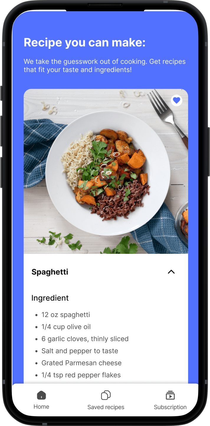 Users can quickly generate recipes by entering the ingredients they already have, dietary preferences, or allergens to avoid. The app then suggests safe, creative meal options with step-by-step instructions. Customers can save these recipes, organize them into categories, and revisit them anytime, making it an ongoing personal kitchen assistant.