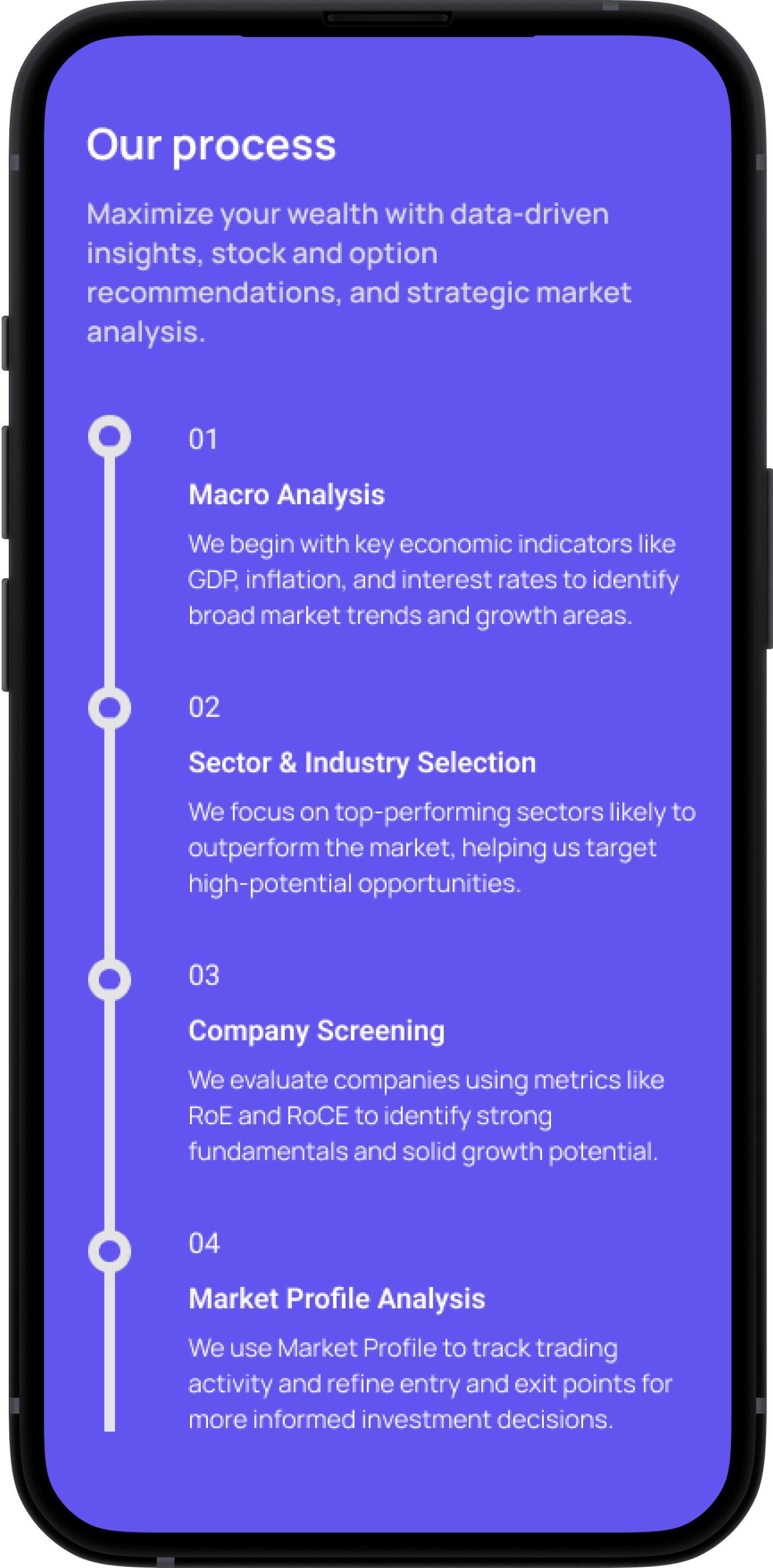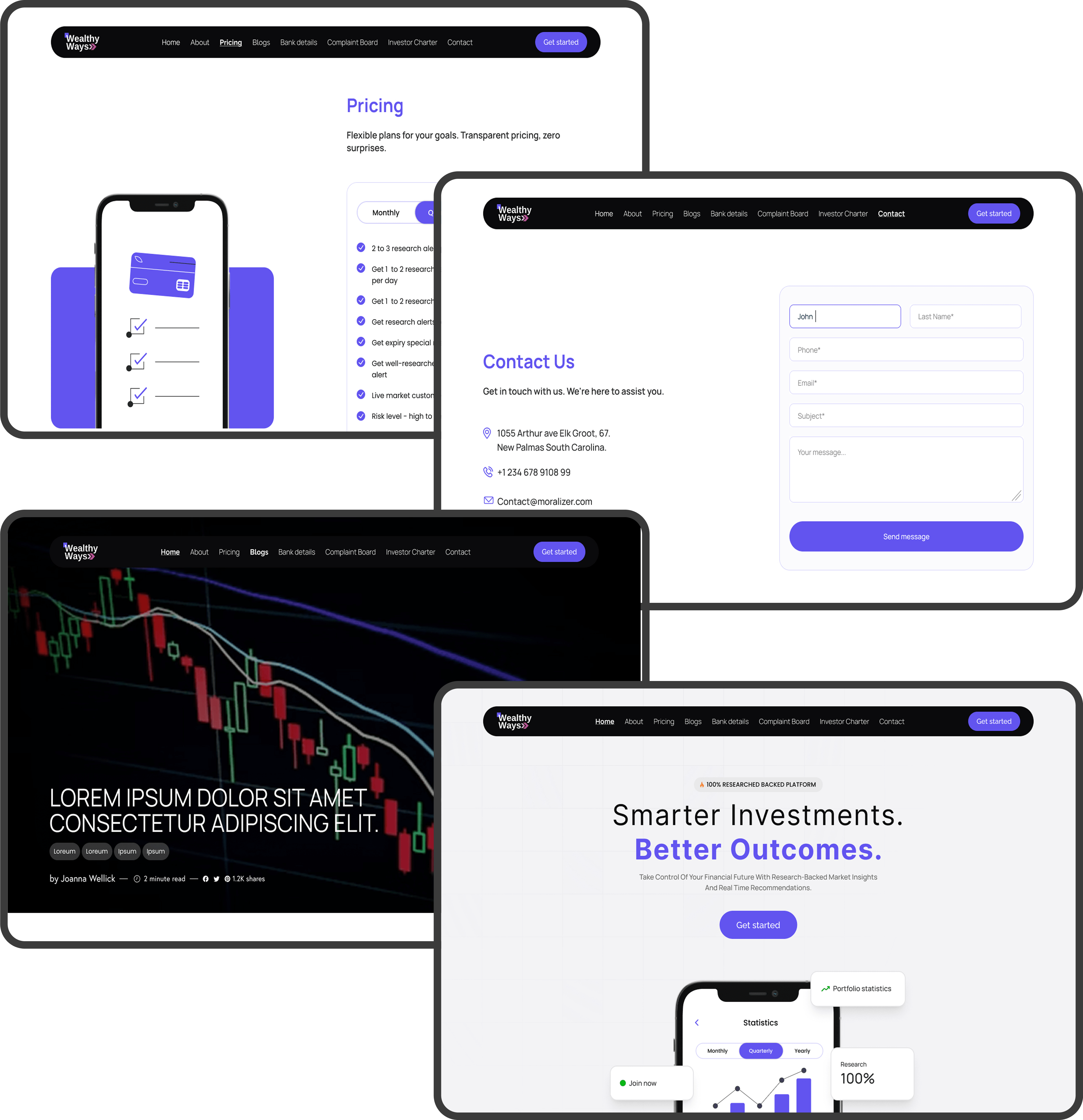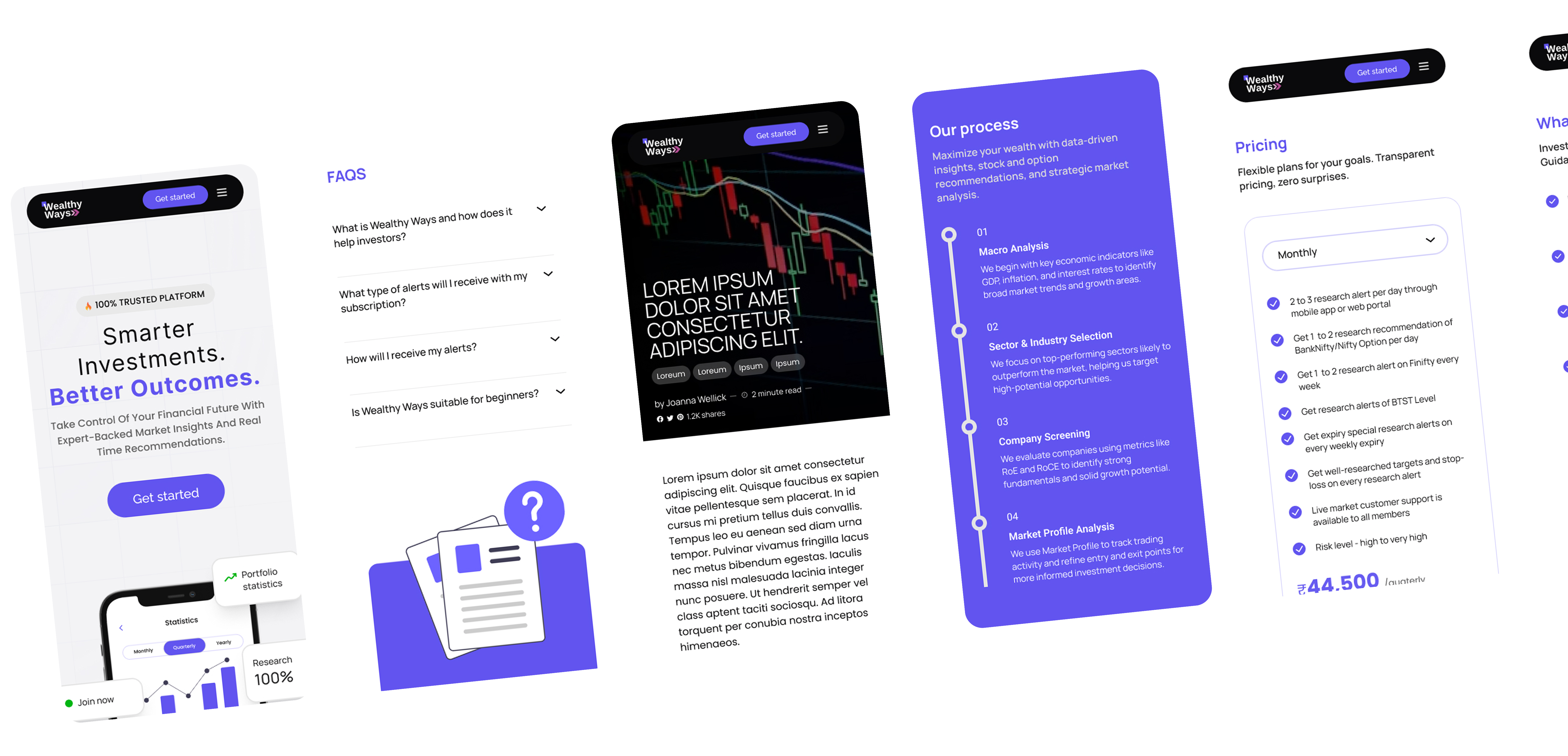The customer interface of Wealthy Ways embodies intuitive financial intelligence through a meticulously crafted user experience. Built with a mobile-first approach, the platform features clean card-based layouts that prioritize critical information hierarchy. A smooth animations guide users through market trends, while color-coded signal indicators (green for buy opportunities, amber for hold recommendations, red for exit alerts) provide instant visual clarity. Every interaction, from swiping through blogs to accessing detailed research reports, is designed to minimize cognitive load, ensuring users can make informed investment decisions quickly and efficiently across all devices.